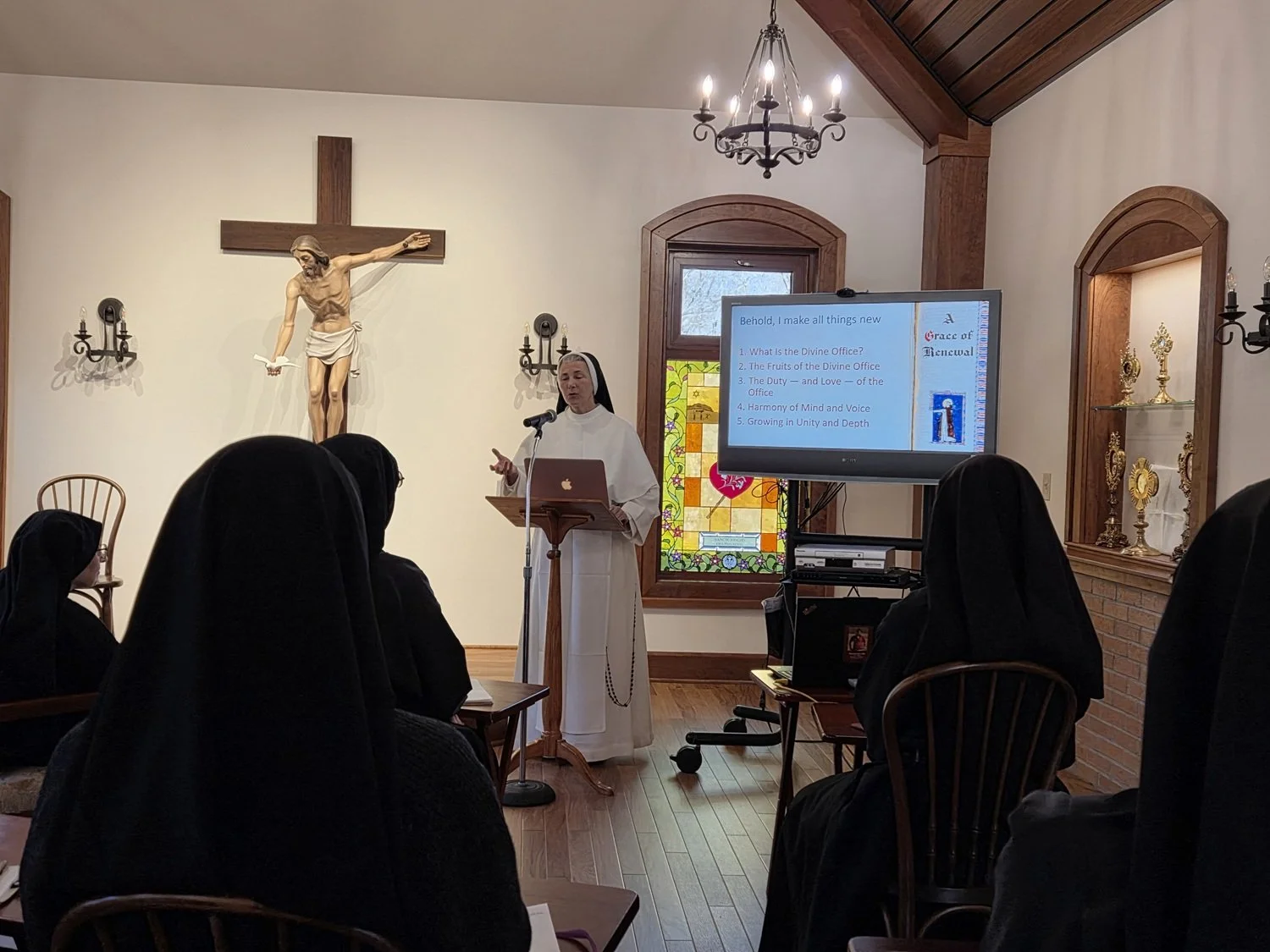 Divine Office class with Sr. Rosemary (in our new Chapter Room)