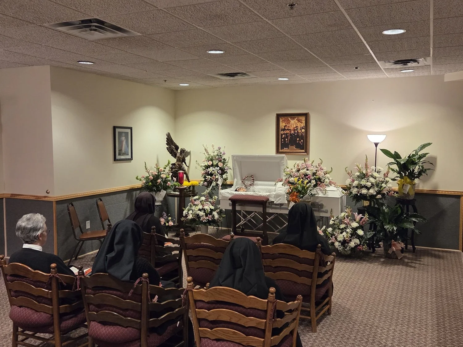 On March 3rd, we welcomed home the mortal remains of our dear Sr. Mary Magdalen. We transformed our visiting parlor into a little chapel of sorts and sang the Divine Office there until the funeral and burial the next day. It was as always a beautiful opportunity to keep vigil, to pray for our Sister, and to welcome the numerous friends and family members who came to pay their respects.